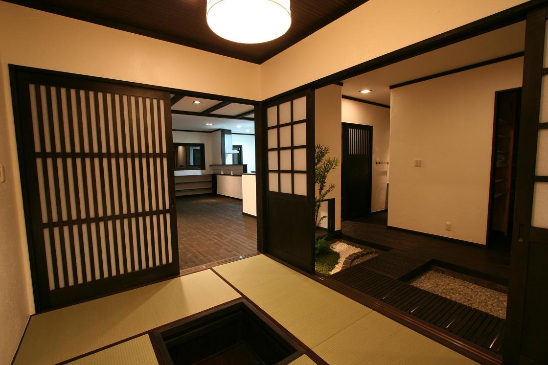 夢いっぱい施工実例 ★JAPANESE STYLE★ 玄関戸を開けると、坪庭を配した料亭なみの和モダンな玄関土間。 和室、LDK、玄関がひとつの導線で結ばれ奥行きのある空間を実現しました。 ギャラリー 夢いっぱい施工実例に戻る