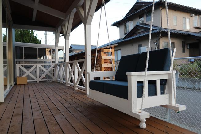 大きなカバードポーチにはソファブランコも!