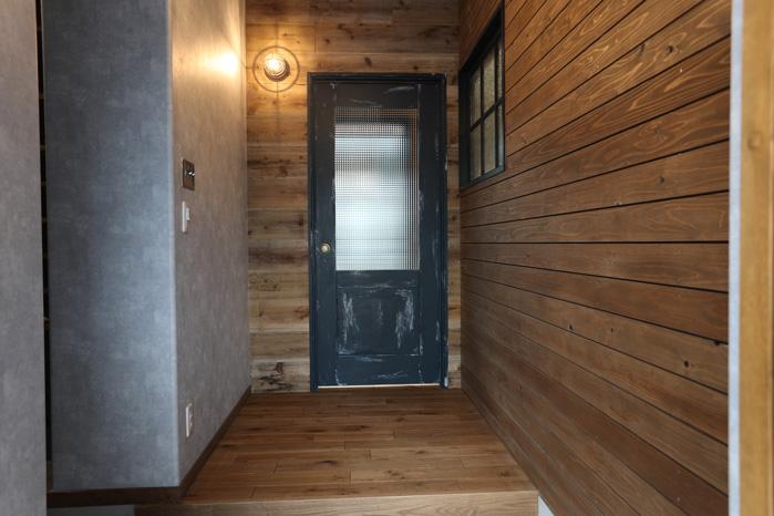 エイジングされたドアも時の流れをイメージさせてくれる佇まい。