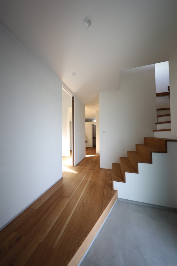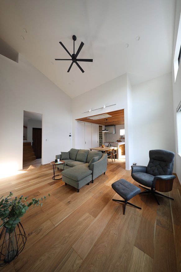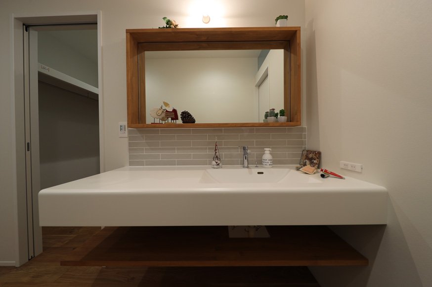 玄関を入ってすぐのシューズクロークを兼ねた大きな収納は、勝手口、キッチンと繋がっていてとても使い勝手のよい間取りになっています。ハイブリッドガス床暖のパワーは絶大で、床暖だけで室内は快適温度を保てます。