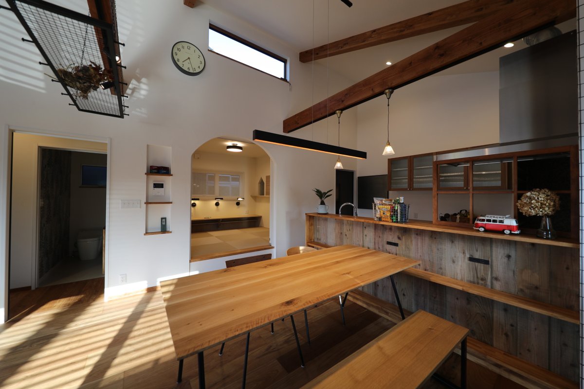 福井市で理想の平屋住宅をお探しの方へ。DIY好きなオーナーが手がけたこだわりの住まいをご紹介します。この家は、田舎暮らしを満喫したい方に最適で、広々とした勾配天井のLDKが特徴。自然光がたっぷり差し込む明るい空間は、ご家族でのくつろぎやゲストとの団らんにもぴったりです。
